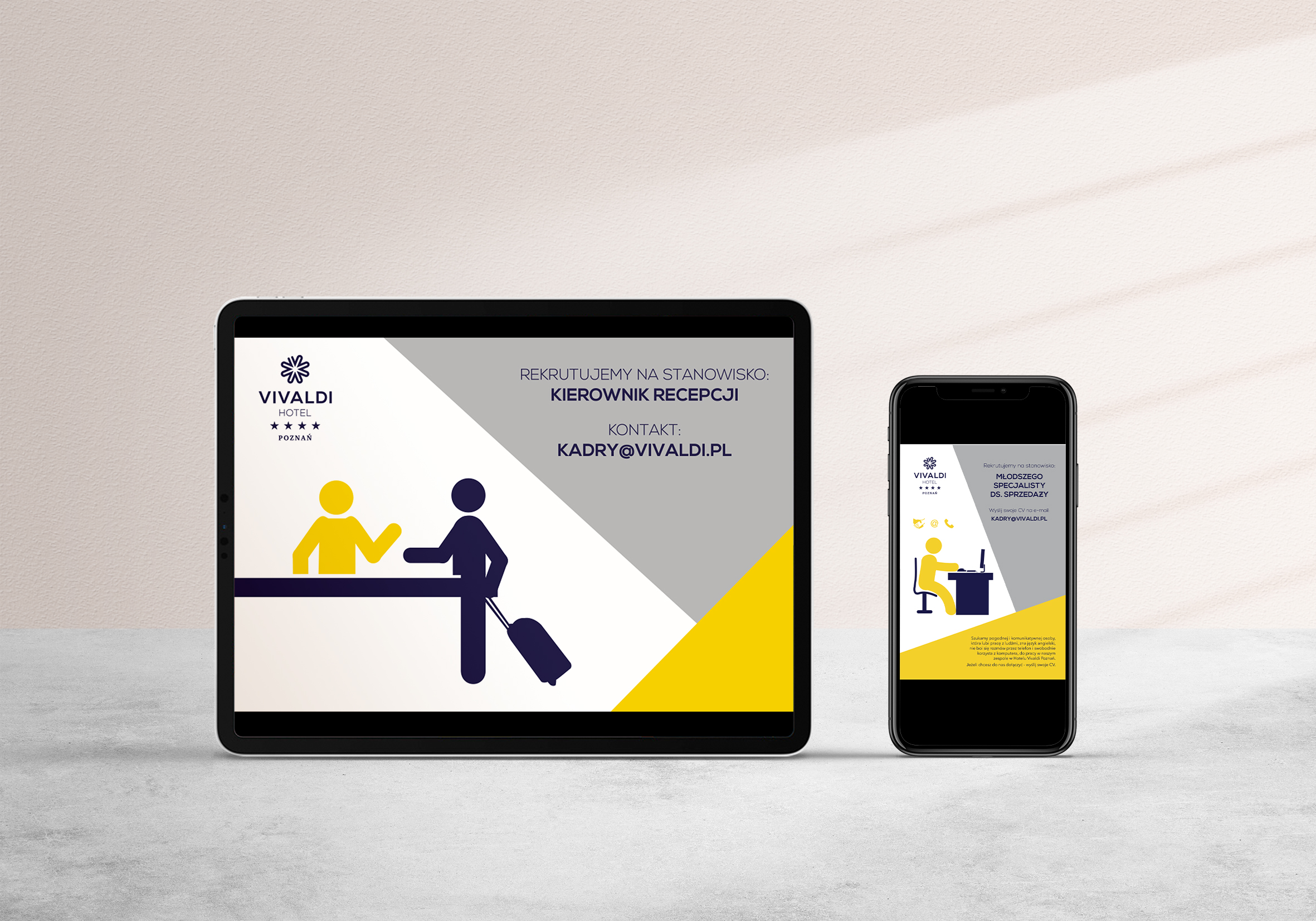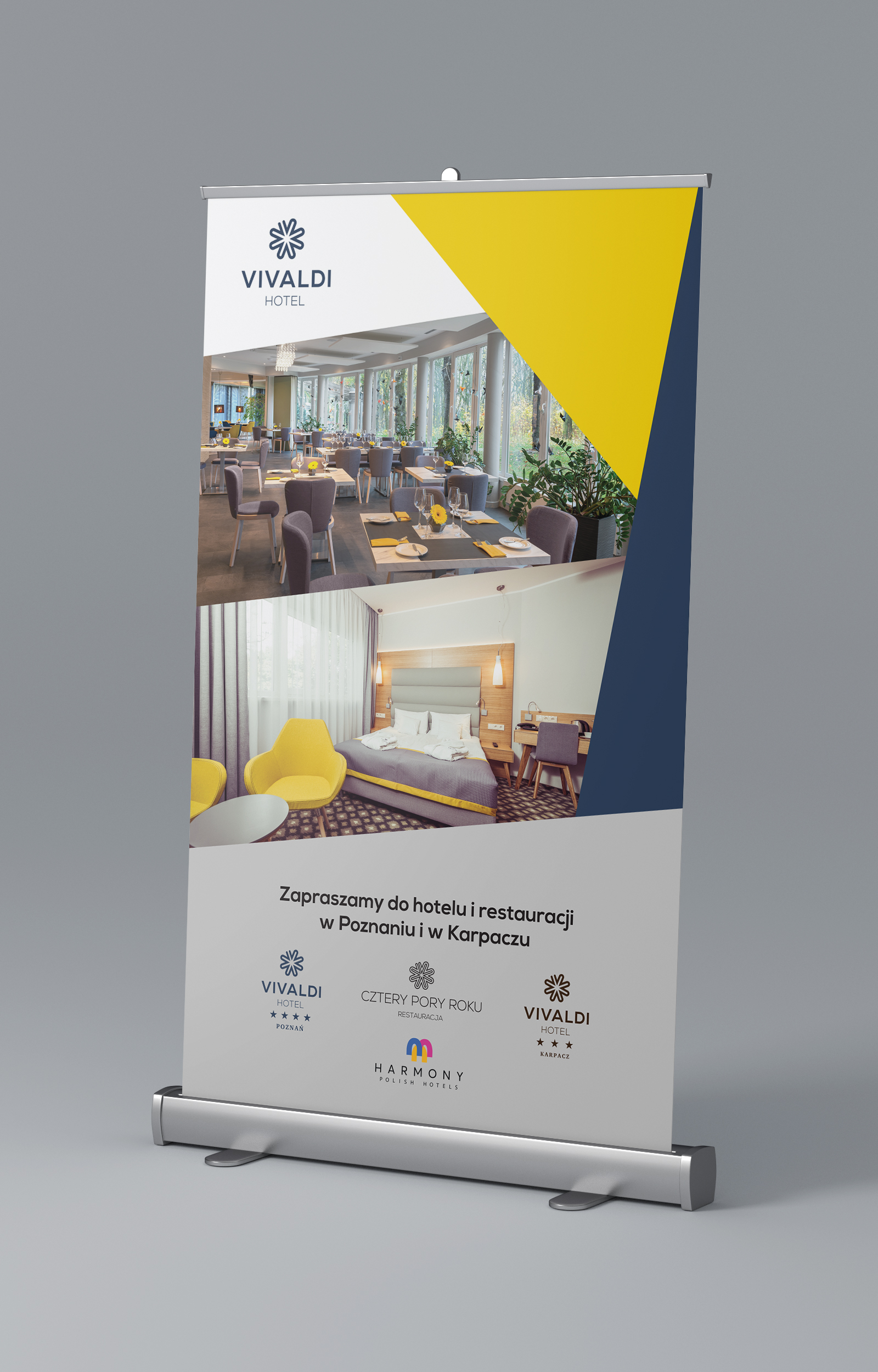 Przygotowaliśmy pełną strategię komunikacji wizualnej dla Hotelu Vivaldi w Poznaniu, zgodnie z którą projektujemy poszczególne elementy drukowane, zarówno informacyjne, jak i materiały marketingowe. Tworzymy również grafiki do kampanii reklamowych on-line, rekrutacyjne oraz promocyjne.